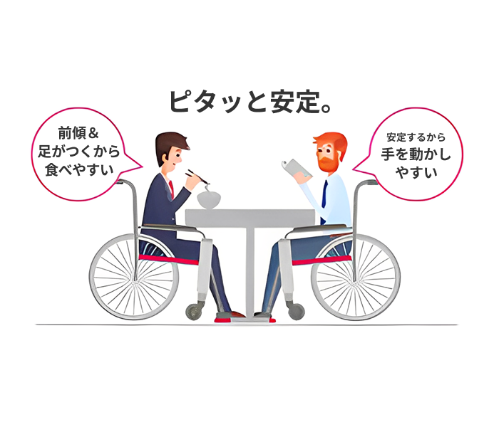 足が床にしっかり着くので、食事がしやすく、前傾姿勢になるので誤嚥(ごえん)防止にもなります。