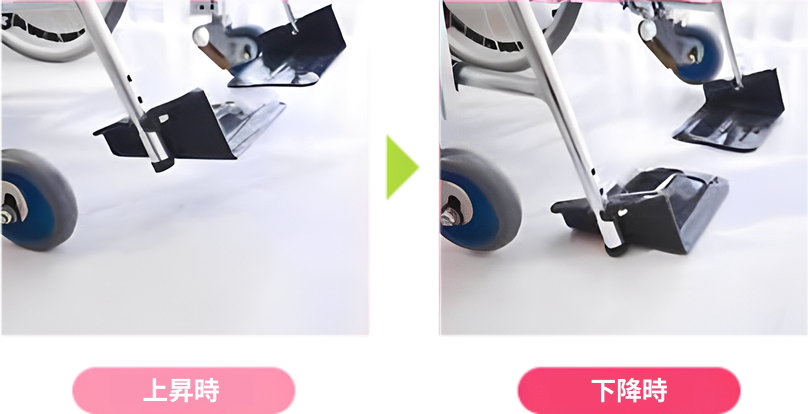 フットパネルが床にピタッとつくので、車いすの乗り降りの際に介護者がかがんでフットパネルを上げ下げする必要がありません。介護者の腰への負担が軽減され、腰痛対策としても効果が期待できます。